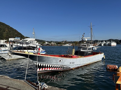 港を散策していると大変恐いデザインの船が係留されていました。