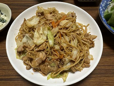 1523:夕食に焼きそばを1.5人前頂きました。