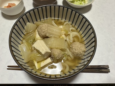 1584:夕食に具沢山のうどんを頂きました。@Jit