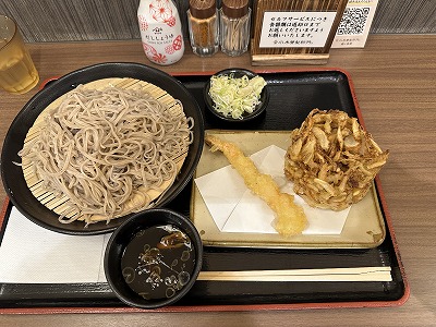 1587:そばの大盛りとかき揚げ、海老天を頂きました。