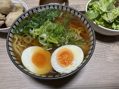 1544:自家製煮卵を入れてラーメンを頂きました。@Jit