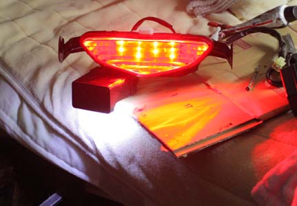 バイクのリヤまわりを全バラしてテールランプを取り出し、ヒートシンクが入るように後部を切り取り。