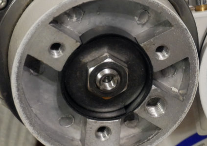これで上下結合ナットの下に外径35mmスラストニードルベアリングとスラストワッシャを入れられるようになった。副次的効果として大きなM10ナットで締めるのでワッシャーが歪みにくくなった。