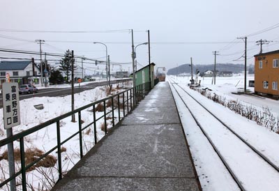 ![]() 駅から県道方向を見る。 車の轍があるので、少し離れたところから通いで利用客がいるのかな? ならまだ大丈夫だな。 |