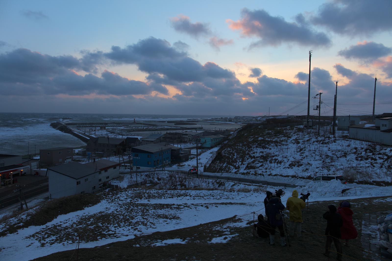 7時半、雲の隙間からちらっと太陽が見えた。 残念ながら初日の出は見られなかったが、日本最北の地で正月を迎えたってことで満足した。 | |