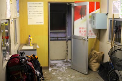 待合室内は物凄い状態。ブロック造りなのが冷たい荒廃感を醸し出してる。(木造なら荒れてても暖かいんだけどね) | |