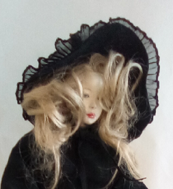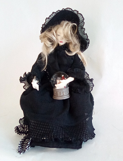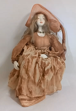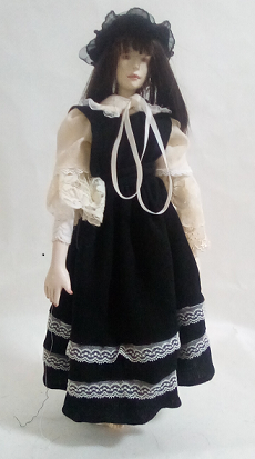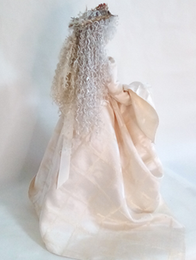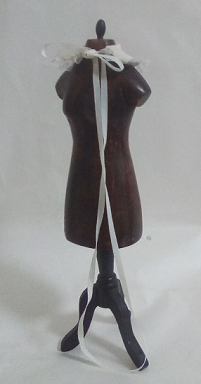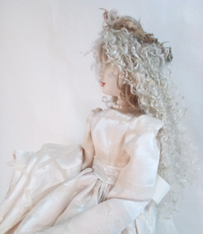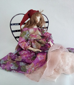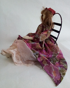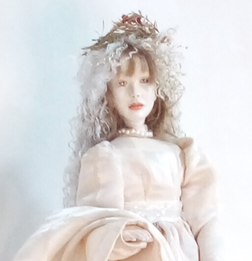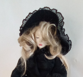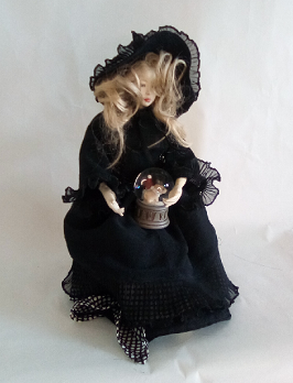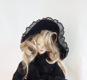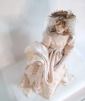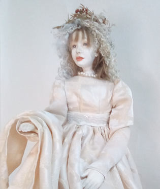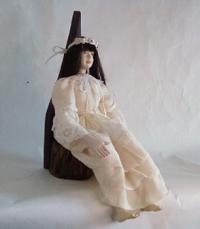 レースの服をまとった懐かしい少女人形、ブティックの片隅にチョコット座ってました