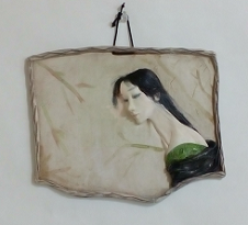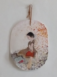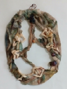 材料 オープン粘土、絹糸、古布