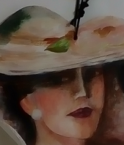手にはつば広の帽子をもっています