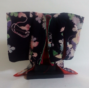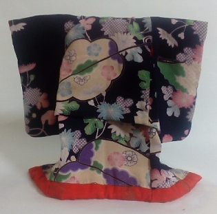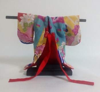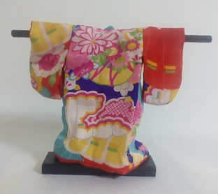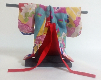 あでやかな柄のきものを人形のサイズにして