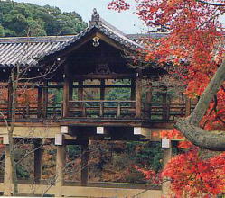 東福寺 《所在地》 京都市東山区本町 【メモ】 ・関白・九条道家が京都一大きな寺との 思いで建立した。寺号は、規模は東大 寺、教えは興福寺に習おうとつけた。 ・国宝の三門は禅宗寺で最古で最大。 ・「通天橋」から見る紅葉は絶品。