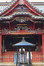 高尾山薬王院 《所在地》 東京都八王子市高尾 【メモ】 ・真言宗大本山で、修験道場として栄えた。 ・高尾山ケーブルカーを降りると杉並木の 参道で、ハイキング姿のお参りも多い。 ・本堂の護摩堂の軒下に巨大な天狗の面、 飯縄権現堂の正面両側に天狗の像が。