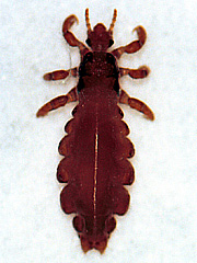 赤みがかった灰褐色、コロモジラミより幾分小型で黒っぽい。