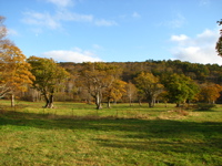 | 2日目のトレッキングは信越トレイルの一部分となっている斑尾高原のハイキングコースを歩く. 山の家でガイドの斉藤さんと合流する.斉藤さんにはこのツアーで過去2回お世話になっており,ツアー参加者からの信頼も厚い. 今回は赤池からスタートして,沼の湿原〜希望(のぞみ)湖〜毛無山〜希望湖のコースだ. |