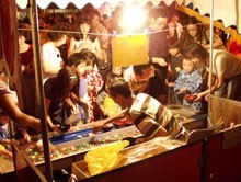 秋といえば各地、お祭りのシーズン到来ということになる。岡崎にあるぼくの家の町内でも、去る日曜日、お祭りがあった。そしてお祭りといえば、おみこし、爆竹花火、露店とごちそうというのが子供たちの何よりの楽しみといえるのだった。・・とぼくは思っているのだけれど、昨今の現実はそうでもないのかもしれない。 お祭りの当日、神社の近くを通ると2〜3人の大人に付き添われたおみこしが練り歩いている。ハッピ姿に豆絞りの手ぬぐいの鉢巻、爆竹。うーんお祭りなのだな・・。と感慨にふけろうとすると、変な光景が目に留まる。「わっしょいわっしょい」の掛け声がないと思ったら、なんとおみこしはリヤカーの上に載せられているではありませんか。本来おみこしは7〜8人の子等に持ち上げられるか担がれ、わっしょわっしょの掛け声とともに波打って往来を進んで行くものなのだろうけれど、今回のおみこしは音もなくすーっと、地面と平行線を描くかのように進んでゆくのでした。しかもそのリヤカーを引いているのも、おとなだったりもして。子供たちは手持ち無沙汰な風で、それに付き添う感じ。 今から15年以上前、家の子供たちが小さかった頃には、ぼくも子供会の役をしたもの。その頃でさえ、子供たちの興味をお祭りに向けさせる工夫をいろいろとしていたことを思い出す。子供一人一人にお菓子の詰合せや、何百円のお駄賃を与えてみたりしては、社務所に子供たちを誘ったもの。なのにせっかく送り出したおみこしは10分も経つと帰ってきてしまうというありさま。なんとなくさびしげな目の前のおみこしの行脚に、同情さえ覚えてしまうのだった。 さらに時代をぼくが子供のころに戻せば、お祭りの様相は現在とはてんで違っていた。『年に一度の』という行事のうちでお祭りはベストいくつかに入っただろう。もう一ヶ月も前から指折り待ち遠しかったもの。お祭りの露店なぞ、準備のうちから品定めにまわったり、おみこしなぞ、午後一度社務所を出れば、夕方暗くなるまで帰らなかったし、行ってはいけないというよその町内にまで遠征もした。その道中での悪さというか悪戯は数多(あまた)。日ごろ吠えつけられては恐々通りすぎる家の、猛犬の犬小屋に爆竹を放り込んでみたりするのは、すこぶるおもしろかった。お祭りを堺にその猛犬君、ぼくらが前を通り過ぎるたびひっそりとしてしまうのだった。