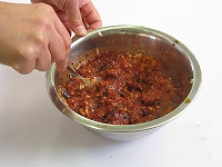 逆さにして水を切るか、ザル等に入れ、重石をかけてゆっくり水気を切ると歯ごたえよく仕上がります |