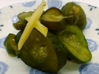 きゅうり、白たまり(小麦を含む)、たまり醤油(大豆を含む/非遺伝子組換え)、みりん、梅酢、しょうが、食塩、粗糖)