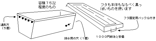 | ● | 一日に三角コーナー一杯程度が投入の目安。よく日のあたる場所にケースを置く |