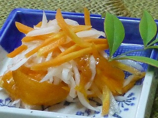 にんじん、大根の組み合わせは紅白をイメージするばかりでなく、旬の味としてふさわしい。