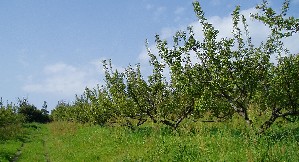 機械を使ってできる作業もありますが、いずれもたいへんな作業ばかり。写真にあるような足場のよい梅畑ばかりというわけにもゆきません。傾斜のきつい斜面での作業はことのほかたいへんです。 |