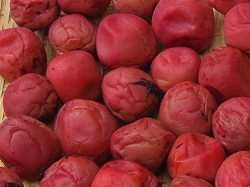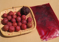 10日ほど経ったら天気のよい日をえらんで天日干し。 赤しそは軽く絞って団子にして天日干し。梅酢もいっしょに天日にさらします 用意していただくもの ・ザル(なるべく平坦なもの) |