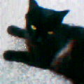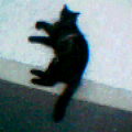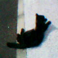 愛宕山の麓の黒猫。 人なつっこい猫で、 近付くとあちらから寄ってきます。 それなりに高齢なようで、 態度が鷹揚にも見えないことも。 光沢が省略されてしまったようで、 シルエットか、 黒一色で描いた壁画のようにも。 |