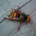 左肩にスズメバチ。 しかし寒さには勝てなかった模様。 玄関先にて。 |