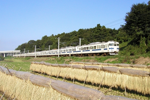 営業運転は土浦以北だが、一日2回荒川駅まで回送列車が運転されている。田植え後の水田に映りこむ後ろ姿が美しい。