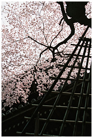 私の好きな桜のひとつが、この真如堂の枝垂れ桜。隣の三重の塔と競い合うように高く伸びている大木で、まさに空から降り注ぐよう。見事な桜のシャワーの真下にも入ることができるし、何より静かに時間を過ごせられる場所。