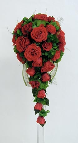 ティアドロップブーケはその名のとおり「涙型」のブーケです。ラウンドブーケを少し下に長く垂らしたデザインです。