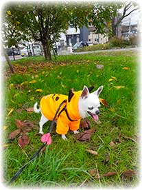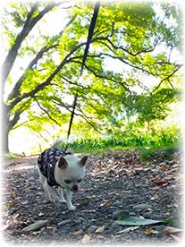 今朝はとうちゃんにくっついてあさんぽ。