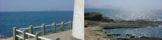 灯台の側から見た海が、左の写真。