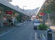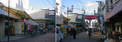 アーケードを出て、サンリブの方面の風景です。 右手には「とらや」、「大正市場」があります。 |