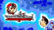 まず、図1のようにロケット(於保先生の授業にならって宇宙戦艦ヤマトを登場させました)とそれに乗っている人、また地球上の人の二人を仮定します。