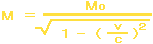| この式は、「速度v」で走っている物質の「重さM」を計算する式です。