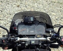 | ツーリングの為の無線機台を取付けています。左に見えるスイッチは自作のハザードスイッチです。 |