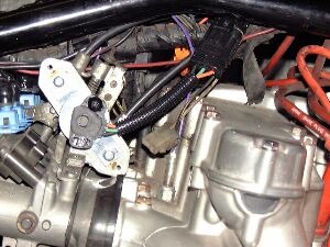 左は、スロットルセンサー ノーマルを外しアダプタをかまして取付けます。