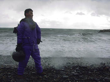 ![]() マップケース、リアボックス、サイドボックス、全て自作。 サイドボックスはステーをアルミパイプで作り、ゴミ箱を黒く塗り、トラック電飾用のランプをウインカー代わりにくっつけた力作。 リヤボックスはホームセンターの980円のプラケースを塗装。蓋の上にラック用の網を付け、ネットを張れるようにした。 ![]() マップケースは、軍装品店の中田商店で売ってる、東ドイツ軍のマップケースを改造。 メーターケース、ライトボックス、トップブリッジカバーは銀色に塗装。 ●日本海を見に行こうツーリング(3泊4日野宿旅)● 2000年11月 大学の友人が原付免許を取ってカブを買ったと聞き、一緒に冬の日本海を見に新潟へツーリングに行きました。 周りにバイクに乗ってる友人がおらず、友人に初のライダー誕生ということで嬉しくて誘ったが、 友人はこの時まだバイクを買って一ヶ月たらず、まだ100キロも走っておらず、 それでいきなり林道走行や初野宿をさせてしまって、今考えるとかなり無謀だったな・・・ ![]() 中津川林道の三国峠。(ツーリングマップル関東甲信越 51P C-4) バイク初心者の友人だが、なかなか林道も面白いと言っていた。 ![]() 一泊目、草津温泉の湯畑前のベンチで野宿。寒い。(ツーリングマップル関東 77P H-4) でも翌朝、こごえた体で無料浴場に入ってサイコーだった。 ![]() 目の前は日本海!とうとうここまで来た!(ツーリングマップル関東 93P H-4) ![]() 2泊目、道の駅能生(ツーリングマップル関東 94P C-3)で野宿。 通用口の前だったが、ちゃんと開店前に撤収したので許してちょ。 ![]() 日本海の荒波!カッコツケてます。(ツーリングマップル関東 94P C-3あたり) ![]() 帰りは糸魚川からR148に入って白馬経由で。(ツーリングマップル関東 84P H-2あたり) 走りながら前を行く友人を激写。片手運転、いけませんね。 ![]() 国道ばかりじゃつまらんので、わき道に入って行くことに。(場所忘れた) ![]() くそー、白馬村のあたりで雪が振ってきた・・・あわててカッパを着込む。 ![]() 山道走ってたら雪山が綺麗だったので、記念撮影。(場所忘れた) ![]() どうせなら帰りに太平洋まで行って日本縦断をしようと、浦和の家を通り過ぎて、横浜まで行った。 山下公園でカモメと戯れる。(ツーリングマップル関東 27P F-1) 泥にバイクがハマッた 2000年10月